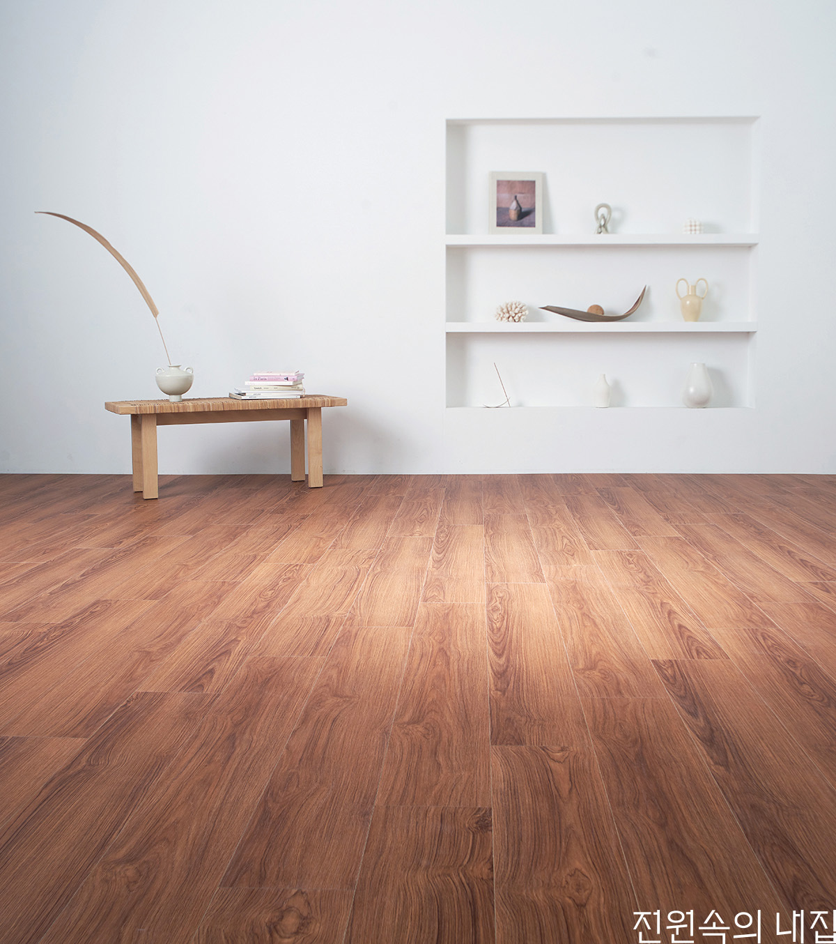 합리적인 가격으로 원목의 느낌을 가져올 수 있는 바닥재. 여기에 165㎜라는 넓은 폭으로 공간 개방감을 극대화할 수 있는 효과도 있다. 시공 시 냄새를 줄여주는 친환경 접착제 등을 쓰면 더욱 안전하게 사용 가능하다. 노바마루