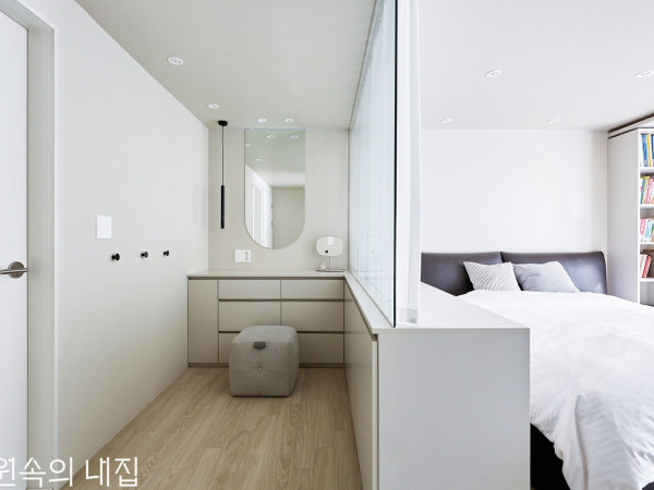 WHITE & WOOD HOUSE오랜 준비 끝에 맞이한 부부의 힐링 하우스.하얗게 펼쳐진 공간에 따뜻한 목재가 온기를 불어넣는다.외부 마당과 연결된 2층 현관. 벽면에는 앉거나 짐을 놓을 수 있는 벤치를 마련했다.2층 현관에서 바라본 복도의 모습치과의사인 아내와 대학 강사인 미국인 남편이 거주하는 청주의 한 타운하우스. 식물을 가꾸고 싶었던 아내와 지인들을 초대해 바비큐를 즐기며 전원생활을 누리고 싶었던 남편은 현재 집으로 오기 전, 큰 테라스가 있는 주상복합주택에서 2년 정도의 적응 기간을 가졌다. 그곳에서 전원생활을 간접적으로 경험한 부부는 도심 속 전원 공간을 찾던 끝에 현재의 집과 인연이 닿게 되었다고.“청주의 외곽도로에 위치한 이 주택 단지는 집을 새로 짓기가 아직은 조심스럽고, 시내권 생활을 포기할 수 없었던 우리에게 접근성이 좋았어요. 리모델링만 한다면 좋은 집이 탄생할 수 있는 조건이었죠.”이번 리모델링 프로젝트를 맡은 스페이스.d의 정용선 실장은 벽식 구조였던 주택 특성상 대단위의 구조 변경 계획에 어려움을 겪었지만, 마감 방식이나 재료에 차별성을 두어 집의 장점은 살리되, 단점은 보완하는 방식으로 리모델링 계획을 잡아나갔다.BEFORE리모델링 전 어둡고 칙칙했던 내부3층으로 이뤄진 주택은 경사진 곳에 지어져 낮은 대지의 1층 현관과, 마당과 연결된 2층 현관으로 출입이 가능하다. 부부가 자주 이용하는 1층 현관은 창고와 계단만을 품은 공간으로, 우아한 조명과 모던한 컬러 조합으로 고급스러운 분위기를 더했다. 1층 계단을 올라 2층에 도착하면 가장 먼저 새하얀 복도와 마주한다. 정면으로는 깔끔하게 정제된 거실과 주방 공간이 펼쳐지는데, 전체적으로 화이트와 우드 인테리어를 차용했고, 특별한 소품 없이 필요한 가구로만 채워 미니멀한 인테리어를 구현했다.복도를 바라본 2층 거실 전경. 주방과 거실을 나누는 벽에는 매립형 벽난로를 설치해 색다른 느낌의 포인트를 주었다.우드 소재의 가구로 채운 주방과 다이닝 공간. 아일랜드를 추가로 배치해 효율적인 작업 공간을 확보했다.주방은 정용선 실장이 특히 신경을 많이 쓴 공간 중 하나. 손님을 자주 초대하는 부부는 음식 대접 등 효율적인 주방 사용을 위해 기존 주방의 구조를 바꾸길 원했다. 이에 식탁 위치를 전망이 좋은 창가로 이동시키고 주방 가구는 아일랜드 싱크대로 바꿔 작업공간을 확보해 효율성을 높였다. 리모델링이 끝난 새 주방의 모습은 부부가 가장 만족하는 공간이 되었다는 후문이다.2층 복도 끝으로는 부부의 욕실과 드레스룸을 품은 침실 그리고 2층 현관이 자리한다. 부부 침실과 드레스룸은 목재 슬라이딩 도어로 공간을 나누었다. 드레스룸의 넉넉한 수납공간 덕분에 침실에는 수납장 없이 침대 가구로만 채워 넓은 공간을 확보할 수 있었다.PLANHOUSE PLAN위치▶ 충청북도 청주시|거주인원▶ 2명(부부), 반려견 1, 반려묘 1건축면적▶ 128.27㎡(38.80평)내부마감재▶ 벽 – 벤자민무어 페인트 / 바닥 - 포세린 타일(오이스터 트레이딩), 원목마루(떼카코리아)창호재▶ 이건창호욕실 및 주방 타일▶ 오이스터 트레이딩|수전 등 욕실기기▶ 한스그로헤, 퓨로계단재·난간▶ 원목마루|조명▶ 루이스폴센현관문▶ 이건창호, 리치도어|중문▶ 이건라움 슬라이딩 도어|방문▶ 현장 제작붙박이장▶ 리바트 이즈마인 프레임 드레스룸|식탁▶ Niels.O.Moller거실장▶ USM시공·설계▶ 스페이스.d 043-256-8005 www.instagram.com/space.d901침실과 이어진 드레스룸에는 오픈형 행거 가구를 들여 답답함을 해소했다.(위, 아래) 부부의 침실. 선반형 침대 헤드에 충전용 USB 허브와 자리에서 조작 가능한 조명을 함께 설치해 편의성을 높였다.SPACE POINTPOINT 1 계단참 수납공간2층과 3층 사이 계단참 벽면에 설치된 붙박이장은 유용한 수납공간이 되어준다.POINT 2 슬라이딩 도어 거울침실과 드레스룸을 연결하는 슬라이딩 도어 뒤편에 전신 거울을 설치했다.욕실에는 인조대리석으로 제작한 세면대, 직수 타입의 양변기 등을 두어 일반적인 화장실의 형태를 탈피했다.다용도실과 인접한 세탁실계단실 벽면 하단에 설치된 매립등이 계단을 환하게 비추며 길을 안내한다.미니멀하게 꾸민 3층 거실의 모습. 문틀과 경첩이 드러나지 않는 도어를 천장 상부까지 올려 층고가 높아 보인다.맨 위층인 3층은 거실을 중심으로 방 3개와 외부 테라스 공간으로 구성했다. 3개의 방은 각각 게스트룸, 취미방, 서재로 나누어 여분의 방을 여가 공간으로 활용했다. 거실과 직결된 외부 테라스 공간은 푸른 하늘과 맞닿아 주변 자연경관을 한눈에 담을 수 있는 부부의 힐링 장소가 되어준다.리모델링 후, 어둡고 칙칙했던 기존 인테리어에서 완전히 탈피해 화사하게 바뀐 이곳에서 그토록 바랐던 전원생활을 누리게 된 부부. 이전의 경험이 오늘을 만들어준 발판이 된 것처럼 앞으로의 일상이 행복한 꽃길의 양분이 되어주길 간절히 바라본다.3층 거실 옆 큰 창을 통해 아름다운 뷰를 간직한 외부 테라스 공간과 연결된다.취재_이래현 | 사진_진성기(쏘울그래프)ⓒ 월간 전원속의 내집/Vol.261www.uujj.co.kr월간 <전원속의 내집> 의 기사 저작권은 (주)주