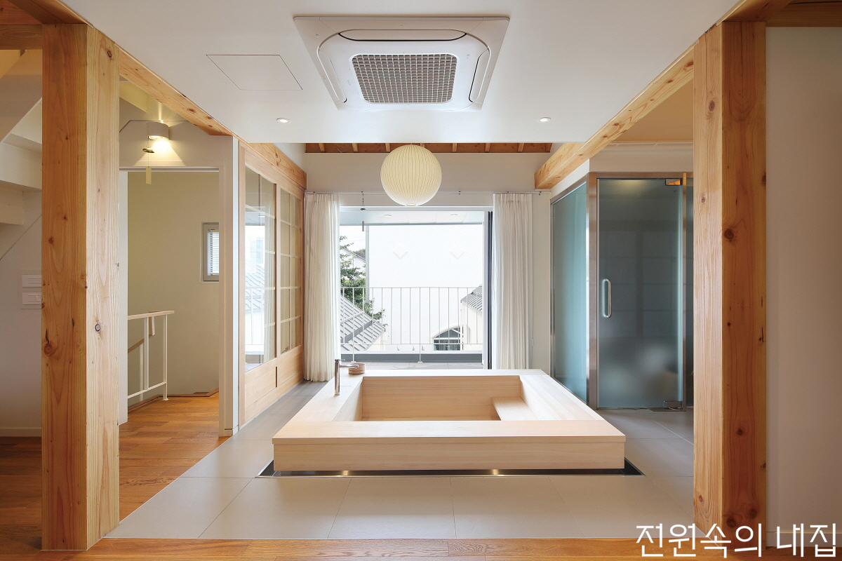 욕실은 가장 프라이빗해 작고 가려지는 경우가 많다. 대중욕탕 방문도 어려운 시기, 널찍한 욕탕이 그립다면, 집 안에 들여보는 건 어떨까? 주택 중심에 넓은 공간을 주고 힐링을 돕는 소재와 외부 창 등을 더해 나만의 ‘목욕탕’을 만들어보자.