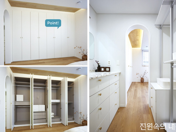 그간의 불편함은 모두 잊고 행복을 찾은 가족. 리모델링 후 실용성과 디자인 둘 다 잡은 집을 만났다.1 거실과 주방의 풍경. 각각의 공간이 같은 동선상에 있지만, 파티션과 아일랜드가 구획을 나눈다.널찍한 평수의 아파트로 새로운 보금자리를 얻은 가족. 비록 오래됐지만, 단지 내 차가 다니지 않아 아이에게도 안전하고, 잘 가꿔진 조경과 창 너머로 보이는 아름다운 조망이 이곳을 선택한 이유였다.어두운 느낌이 강했던 기존 인테리어를 조금 더 따뜻하게 바꾸고, 답답했던 공간의 효율성을 높이기 위해 리모델링을 결심한 부부. 대전에 위치한 ‘스탠딩피쉬 디자인’의 윤미선 실장을 만나 많은 소통 끝에 세 식구가 오래도록 머물 공간으로 변모했다.2 거실과 이어진 복도. 정면 끝으로 월넛 간살로 포인트를 준 슬라이딩 도어가 눈에 띈다.3 리모델링으로 새롭게 탄생한 아이의 교구방. 장난감과 교구 등이 수납장에 깔끔하게 정돈되어 있다.이번 리모델링의 핵심은 ‘공간의 분리와 재구성’이다. 이전에 살던 집에서는 부부와 아이의 공간이 명확히 분리되지 않아 세 식구 모두 생활하는 데 불편함을 겪었다고.“공간을 분리할 때 최대한 아이를 배려하길 바라셨어요. 독립적인 공간 개념을 심어주는 동시에 가족의 주요 동선인 거실과 주방이랑 가까웠으면 좋겠다고요.”4 아이가 잠에 집중할 수 있도록 최소한의 가구만 배치한 아이 침실PLANHouse Plan대지위치 ▶ 대전광역시 유성구|거주인원 ▶ 3명(부부 + 자녀 1)건축면적 ▶ 171.88㎡(51.99평)내부마감재 ▶ 벽 – 삼화페인트 아이사랑(거실, 복도), LG하우시스 베스띠 벽지 / 마루 – 노바 원목마루 ST욕실 및 주방 타일 ▶ 포세린 수입 타일수전 등 욕실기기 ▶ 아메리칸스탠다드, Crestial(크레샬), 새턴바스, CATALANO(카탈라노)주방 가구 ▶ 제작(무늬목 도어), 블럼 하드웨어주방 상판 ▶ 토탈석재 빅슬랩 타일(아일랜드)조명 ▶ 포시즌 조명, 밝은빛 조명, jjrism 다운라이트, 루이스폴센 Patera Pendant(식탁)스위치·콘센트 ▶ 벨로, 융중문 ▶ 월넛 원목 슬라이딩 도어(월넛 + 유리), 위드지스 글라스 슬라이딩 도어(교구방)파티션 ▶ 월넛 원목 간살(다이닝), 오크 원목 프레임 + 라탄(안방)방문 ▶ 제작(무늬목 도어), 모티스 도어락|붙박이장 ▶ 자체제작 가구(패트 도어)시공·설계 ▶ 스탠딩피쉬 디자인 010-4849-2399 https://blog.naver.com/standingfish부부의 요구에 윤미선 실장은 거실과 인접한 기존의 안방과 드레스룸을 아이의 교구방과 서재로, 맞은편 방은 아이의 침실로 새롭게 구성했다. 드레스룸을 터 한층 넓어진 교구방은 교구 보관이 용이한 수납장을 양벽면에 밀착해 아이가 충분히 놀 수 있는 공간을 마련했고, 입구에는 유리 슬라이딩 도어를 달아 복도와 분리되는 동시에 개방감을 주었다. 덕분에 아이는 열린공간에서 마음껏 놀이를 즐길 수 있고, 부부는 언제든 그 모습을 투명한 유리를 통해 볼 수 있게 되었다.SPACE POINTPOINT 1 라탄 파티션침실 벽면에 라탄 파티션을 설치해 답답함을 해소하고 안락한 분위기를 형성했다.POINT 2 원목 선반과 벽 조명금색 벽 조명에서 은은하게 퍼지는 빛이 원목 선반을 비추며 침실을 따뜻하게 밝혀준다.아이의 공간만큼이나 부부가 머물 장소에도 디자이너의 세심한 배려가 묻어난다. 복도 끝 2개의 작은 방을 안방으로 바꾸면서 먼저 두 방을 나눴던 기존 가벽을 허물었다. 각각의 방은 부부의 침실과 서재를 포함한 드레스룸으로 꾸몄고, 자연스럽게 동선을 이어 하나의 공간으로 완성했다. 여기에 기존 복도 욕실까지 포함해 완전히 분리되면서 생활에 편리함을 더한 부부만의 공간이 탄생할 수 있었다.5 화이트&우드로 꾸민 안방. 한쪽에는 같은 톤의 화장대를 두어 분위기를 맞추었다.6 안방과 이어진 드레스룸&서재. 침실과 대조되는 색상의 가구가 한 공간이지만, 분리된 느낌을 준다.복도와 경계를 이루는 입구에는 월넛 소재의 간살 슬라이딩 도어를 달았다. 집들이를 온 지인들이 가장 많이 언급하는, 이 집만의 시그니처 포인트가 되었다고.각 방을 잇는 복도를 지나면 군더더기 없이 깔끔하게 펼쳐진 거실과 주방을 만난다. 하얀 벽면과 조화를 이루는 원목 소재의 마루와 파티션이 따뜻하고 안락한 분위기를 연출하고, 간소하게 배치된 블랙 컬러의 가구들이 무게를 잡아준다.7 가족이 식사를 즐기는 다이닝룸. 아름다운 자태를 뽐내는 조명은 루이스폴센 제품이다.8 빅슬랩 타일로 마감된 아일랜드 주방 상판이 고급스러운 무늬를 자랑한다.HIDDEN DETAIL사소한 부분도 놓치지 않은 디자이너의 세심한 배려는 집 곳곳에서 발견된다. 공간 속에 숨겨진 디테일적 요소를 소개한다.1 - 홈바를 품은 다이닝간살 파티션으로 거실과 구분된 다이닝룸. 기존 베란다를 확장해 넓힌 공간으로, 빌트인 형식의 김치·와인 냉장고를 배치해 미니 홈바를 완성했다.2 - 편의 기능을 갖춘 주방주방 가구는 블럼 하드웨어를 설치해 편리함을 높였다. 무릎으로 가볍게 터치하면 서랍장이 반자동으로 열린다.3 - 아이를 위한 욕실아이의 키를 고려해 세면대 높이를 조정했고, 그 외 원목 수건봉, 타조알 거울 등으로 디테일을 가미했다.9 가족의 공용 공간. 