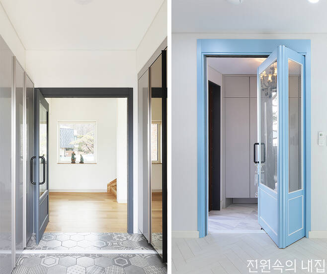 단열, 차음, 먼지 차단 등 기능은 물론 세련된 디자인으로 눈길을 사로잡는 현관 중문 사례를 모았다.