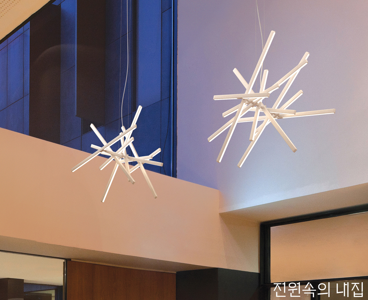 샹들리에를 현대적으로 재해석한 디자인으로, 필요에 따라 납작한 형태나 길쭉한 형태, 다이아몬드 형태로도 변신한다. Ø100~750×H100~750(mm) wellz