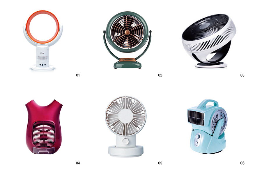 04 KYD-212는 제습기와 선풍기가 하나로 합쳐진 일체형 제품이다. 전면에는 단계조절이 가능한 선풍 기능이, 후면에는 흡입팬으로 들어온 습한 공기를 필터링하여 상단 양쪽의 홀로 건조한 바람을 내보내는 제습기능이 장착되어 있다. 22.8×21.6×41.3(㎝) LOOFEN