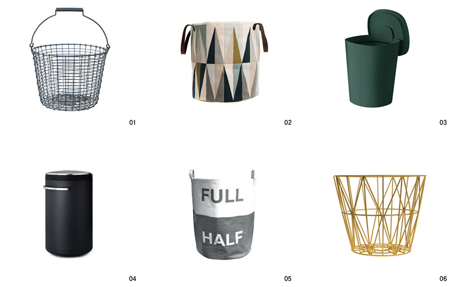 03 세탁물 바구니, 수납함, 쓰레기통 등 여러 가지 용도로 활용 가능한 muuto의 Hideaway Basket. 모던하고 심플한 디자인 덕분에 어떤 공간에도 잘 어울린다. 뚜껑은 몸체 가장자리에 끼울 수 있어 더욱 편리하고 깔끔하게 사용할 수 있다.