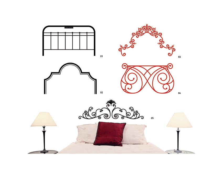 05 여성스러운 침실에 어울리는 부드러운 곡선의 침대헤드스티커ㅣ블랙, 그레이, 실버, 골드 4컬러 1400×470㎜(Double) 아이라이크잇