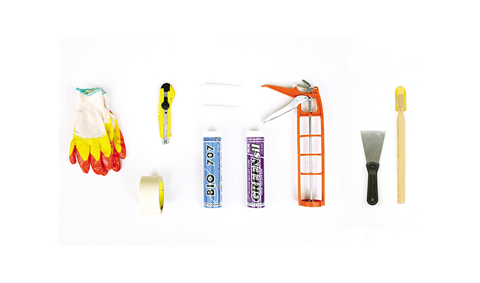 ④ 실리콘 + 실리콘 노즐(촉) _ 실리콘은 용도별로 종류가 다양하고(우측 박스 기사 참고) 마감면에 따라 색도 선택할 수 있다. 구입할 때 노즐을 같이 얻을 수 있는데, 시공 부위에 따라 노즐을 교체하는 경우가 있으니 여분을 구입해 놓는 것이 좋다.