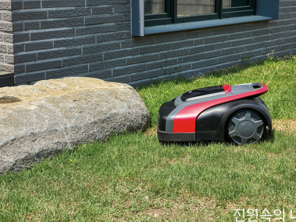 손으로 끌지 말고 스마트폰으로 한번에! 만물이 무럭무럭 자라는 초여름.하루가 다르게 자라는 잔디가 신경 쓰이는데, 매번 깎기는 부담스럽다면?똑똑한 LG 잔디깎이 로봇으로 이제는 오롯이 잔디를 즐겨보자. 잔디를 깎는 것은 멋진 잔디 정원을 위한 필수적인 작업 중 하나다. 잔디를 고르게 만들어 미적 완성도를 높이는 것은 물론 웃자란 잔디로 인한 생장 방해를 해소하고, 잡초 제거에도 도움을 준다. 하지만, 매번 잔디를 깎는 것이 쉬운 작업은 아니다. 한창 자랄 때는 일주일에 1.5cm씩 자라 수시로 작업이 필요한 데다 대략 20~30kg쯤 되는 수동 잔디깎이로 작업하려면 체력은 기본이고 적절한 요령까지 필요하다. 100평 정원 기준 1년에 100시간 넘게 투자해야 한다. 일상이 바쁜 요즘 정원주나 체력이 부족한 은퇴 후 정원주에게는 아무래도 부담스러울 수밖에 없다. 이에 대한 해법은 의외로 가까이 다가와 있다. 실내 청소 로봇처럼, 정원에서의 잔디깎이 로봇이 그것. 그중에서도 ‘가전 명가’로 불리는 LG가 최근 실내 청소 로봇을 넘어 잔디깎이 시장에도 신제품을 선보이며 정원 가전에 새로운 바람을 일으키고 있다. LG 잔디깎이 로봇이 보여줄 잔디 정원은 어떤 모습일지 살펴본다. HOUSE INFO 대지위치 ≫ 경기도 양평군대지면적 ≫ 315m2(95.28평) 정원면적 ≫ 197.94m2(59.87평) * 일반적인 잔디깎이 로봇 작업 방식(왼쪽)과 LG 잔디깎이 로봇의 패턴 작업 방식(오른쪽). LG 잔디깎이 로봇은 가로 패턴 주행 완료 후 세로 패턴 주행을 반복하며, 가로와 세로 패턴 주행 순서는 작업 환경에 따라 바뀔 수 있다. 어디서든 스스로 시간 맞춰 작동하는 잔디깎이 예전에는 잔디를 깎으려면 정원주가 직접 묵직한 잔디깎이를 창고에서 꺼내야 했다. 하지만, 이제는 전원을 켜기만 하면 된다. LG 잔디깎이 로봇의 경우 전용 앱으로 미리 일정과 시간을 설정해 두기만 하면 나머진 스스로 자기 할 일을 수행할 뿐이다. 한편, 전용 앱을 사용하면 정원주가 집에서 멀리 떨어진 장소에서도 로봇의 원격 제어가 가능하다. 덕분에 주말주택처럼 매일 상주하기 어려운 상황에서도 정원 관리를 맡길 수 있다. 로봇은 항상 GPS로 위치가 파악되며, 경계선 이탈 시 도난 의심 경고를 발신한다. 언덕이어도, 복잡한 땅 모양이어도 OK 정원은 저마다의 다양한 지형을 가지고 있어 로봇 선택 시 ‘주행 성능’도 중요하다. LG 잔디깎이 로봇의 등판 각도는 경사 진입 전 35cm 정도의 평지만 확보된다면 최대 25° 경사지에서도 작동한다. 더욱이 LG 잔디깎이 로봇은*IMU를 통한 동선 유지 기능으로 지그재그 패턴으로 작동한다. 또한 전면 초음파센서와 충격센서를 이중 안전장치로 활용한 젠틀 범핑 시스템을 갖췄는데, 이를 통해 충격에 민감한 작물이나 장식품은 물론 로봇 스스로의 보호에도 적잖은 도움을 준다. *IMU_Inertial Measurement Unit. 자이로스코프, 가속도계, 지자기 센서를 통해 로봇의 진행 방향을 정교하게 제어한다. LG 잔디깎이 로봇의 특징인 젠틀범핑 시스템. 초음파 센서로 먼저 장애물을 탐지하는 즉시 감속, 느린 속도로 접촉해 충격센서로 실제 장애물임을 파악하면 동선을 바꿔 작업을 지속한다. 스마트폰 터치 한 번이면 충분한 로봇 LG 잔디깎이 로봇은 충전대 설치나 작동 범위 설정을 위한 와이어 설치 작업이 필요하지만, 걱정할 필요는 없다. LG 전자의 전문팀이 현장을 실측한 뒤 필요 장비를 설치, 장치 설정과 사용자 교육까지 진행하기 때문이다. 필요 시 이전 설치도 도움을 받을 수 있다. 잔디깎이 로봇 자체도 가동을 시작하면 작동 범위 안에서 스스로 공간을 매핑해 최적의 작동 패턴을 학습한다. 깎은 잔디 조각도 정원에 그대로 뿌려지며*멀칭효과를 낸다. 즉, 잔해를 치울 필요 없이 그대로 두면 된다는 것이다. 정원주는 전용 앱이나 잔디깎이 로봇 조작부를 통해 원하는 일정을 설정하고 가끔 블레이드 교체나 청소 등 소소한 관리를 해주기만 하면 된다. 먼 미래의 이야기 같던 로봇은 이제 우리 일상에 깊숙하게 들어와 여러 분야에서 우리를 더욱 자유롭게 하고 있다. LG 잔디깎이 로봇으로 정원을 누리는 일에도 노동 대신 깊이를 더해보는 것은 어떨까? *멀칭(mulching) 농작물을 재배할 때 바크, 자갈, 왕겨, 낙엽 등으로 토양의 표면을 덮어주는 작업을 가리키는 말로, 잔디가 자라는 토양을 보양, 보습하고 잡초를 억제하는 효과를 낸다. MOWER DETAIL INFO주행방식 ≫ 전역 패턴 | 동작·충전 시간 ≫ 충전:100분 / 동작:120분방수등급 ≫ IPX5 | 배터리 ≫ DC22.2V, 4.6Ah, 1년 보장크기 ≫ 69×60×33cm ①전방 초음파 센서 잔디깎이 로봇이 장애물과 충돌하기 전 초음파 센서가 이를 먼저 감지해 앞서 감속한다. 잔디깎이 로봇은 충격센서와 약하게 접촉한 뒤 장애물을 회피하는 기동을 하고 잔디 깎기를 이어서 수행한다. ②레인 센서 잔디깎이 로봇은 기본적인 방수 성능은 갖고 있지만, 비 오는 날은 작업 효율이 상당히 떨어지게 된다. 레인 센서 빗물이 닿으면 충전대로 복귀해 설정된 시간 동안 비를 피한 후 다시 작업에 나선다. ③칼날 높이 조절 다이얼 원하는 잔디 길이는 다이얼을 돌리는 것으로 설정할 수 있다. 다만, 더 나은 잔디 생육